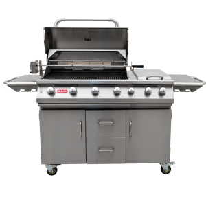 6 palników głównych wykonanych ze stali nierdzewnej zapewnia równomierne ciepło na całej powierzchni rusztu. Palnik na podczerwień umożliwia szybkie opiekanie mięs na chrupiącą skórkę i zapewnia perfekcyjne rezultaty w krótkim czasie.