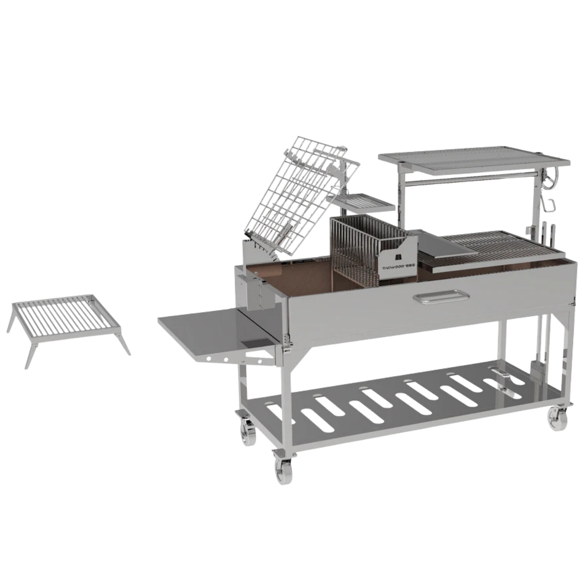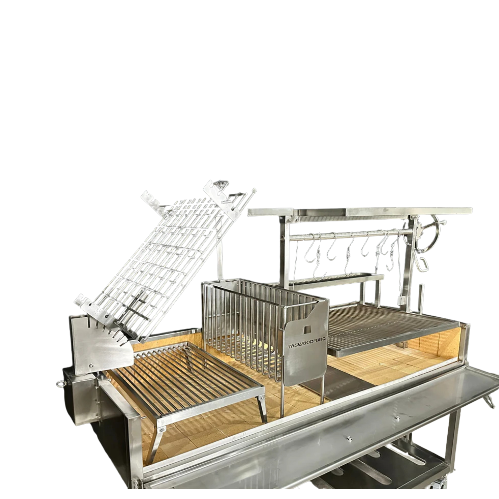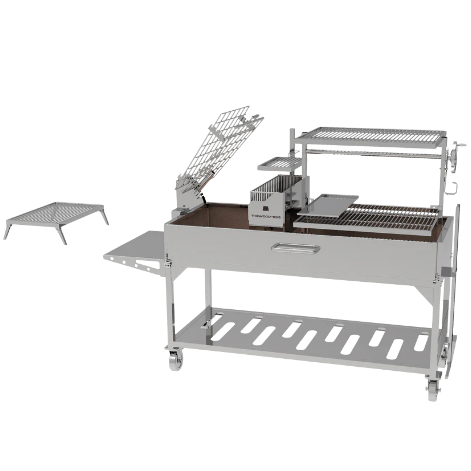 Dzięki palenisku typu „brasero” w stylu gaucho, konstrukcja ta znacznie upraszcza proces rozpalania węgla drzewnego, zmniejszając wysiłek i jednocześnie utrzymując płomień w odpowiedniej odległości od potrawy.