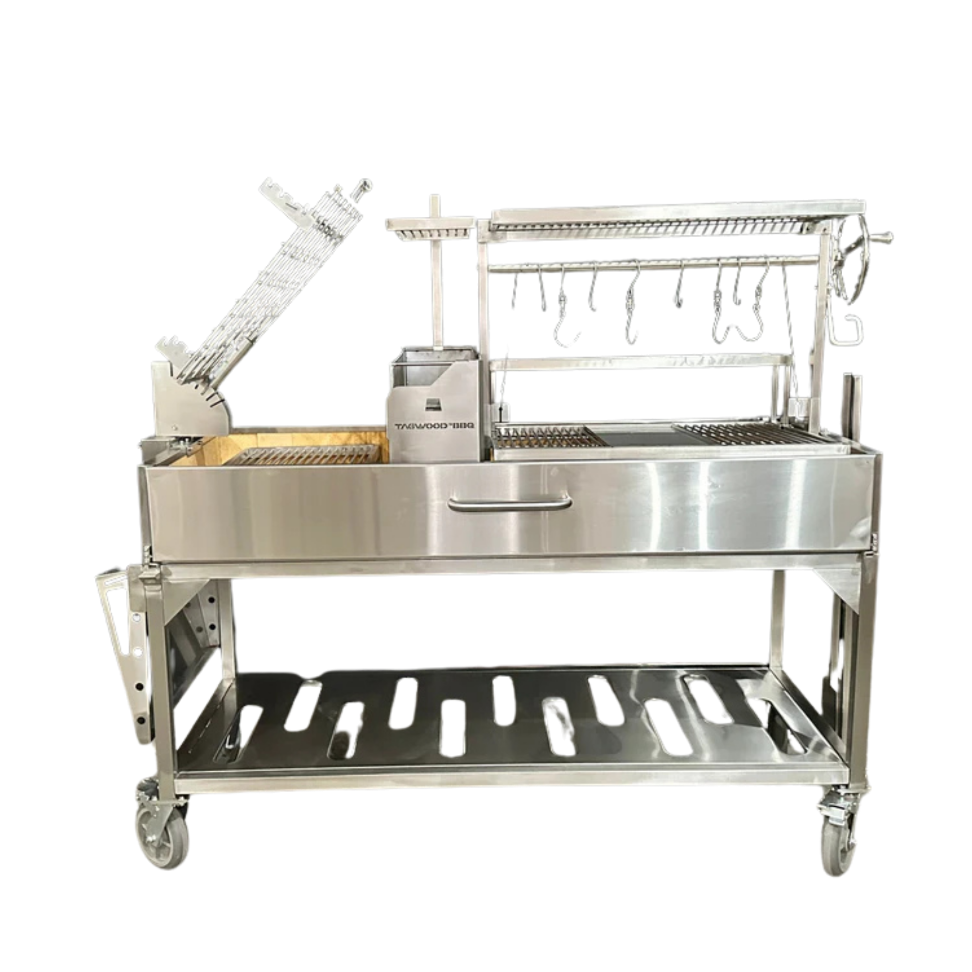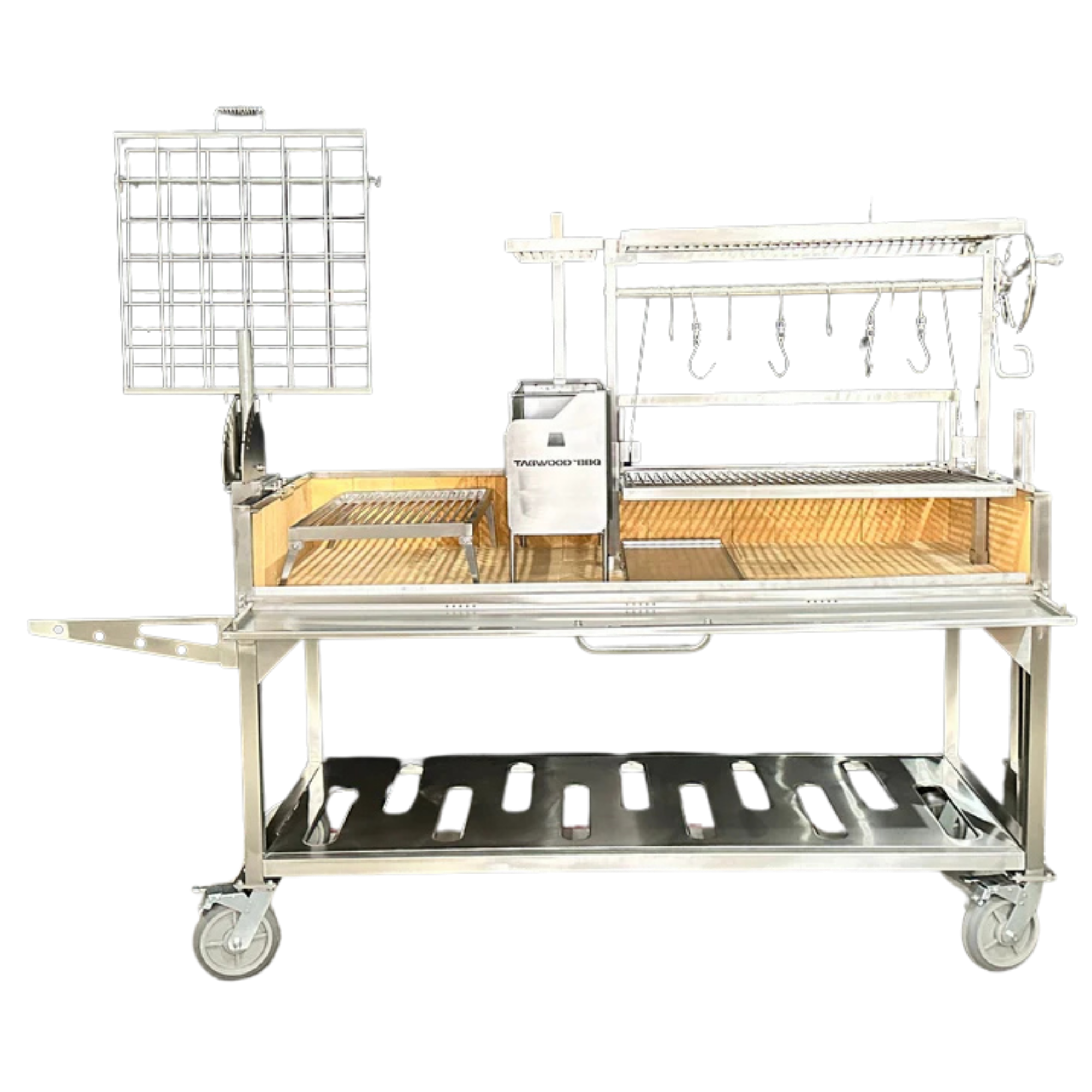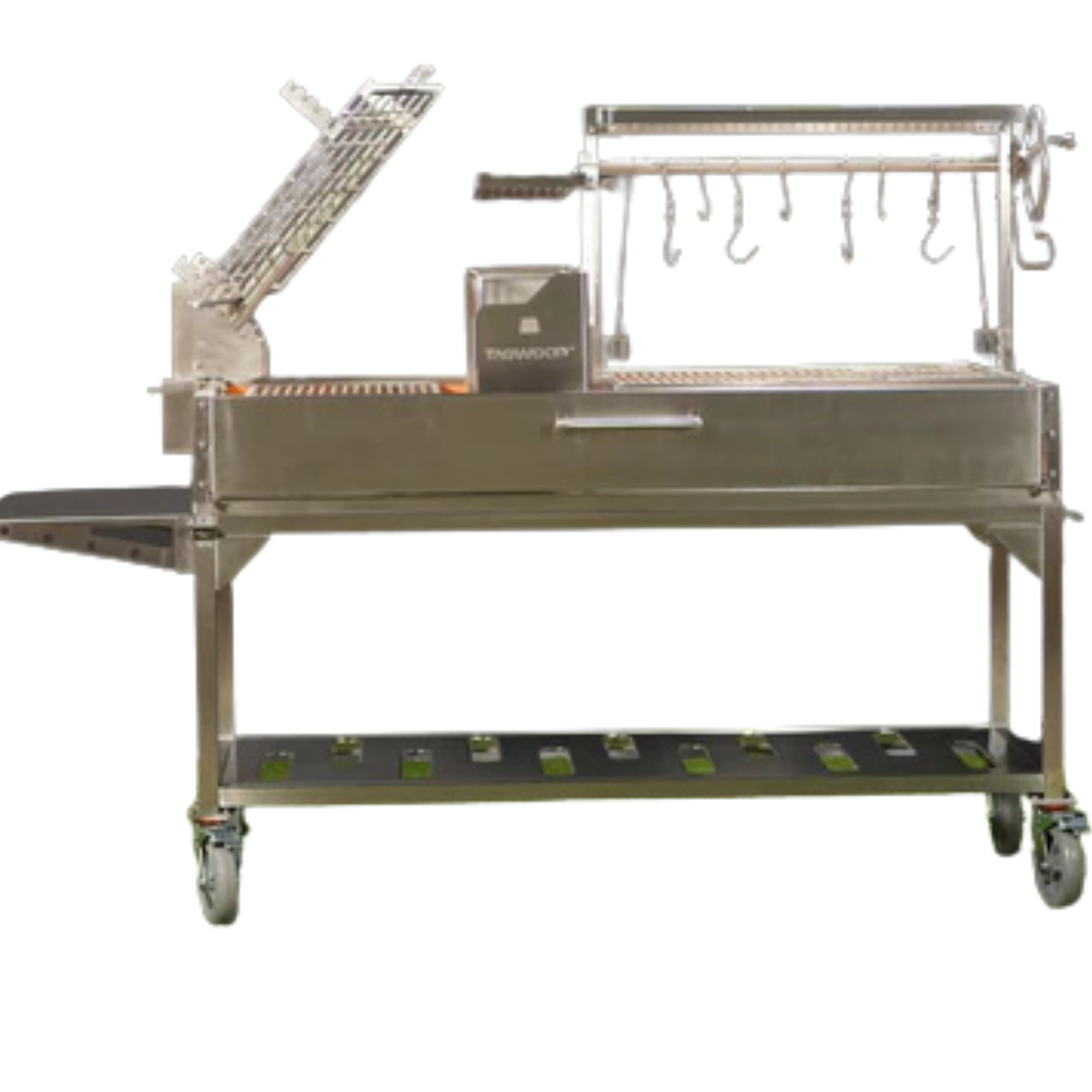 Dzięki palenisku typu „brasero” w stylu gaucho, konstrukcja ta znacznie upraszcza proces rozpalania węgla drzewnego, zmniejszając wysiłek i jednocześnie utrzymując płomień w odpowiedniej odległości od potrawy.